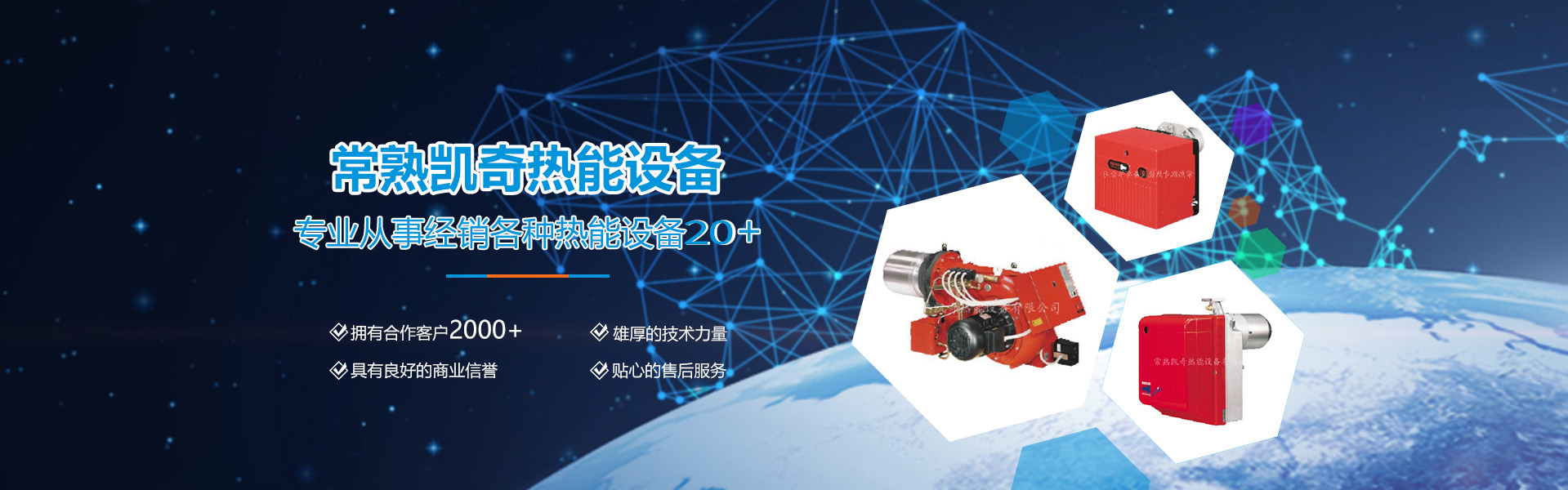 常熟凱奇熱能設備有限公司位于江蘇省常熟市新世紀大道與沙家浜路交界處,離蘇嘉杭高速只要五分鐘的路程,交通十分便利。我們有著從事經(jīng)銷各種熱能設備十多年的經(jīng)驗,現(xiàn)已服務過的行業(yè)有(鍋爐、涂裝、化工、無紡、鋁合金、學校、賓館、浴場、服裝、造紙、精密機械等),已有2000多家長期合作的用戶,具有良好的商業(yè)信譽,雄厚的技術力量和貼心的售后服務。